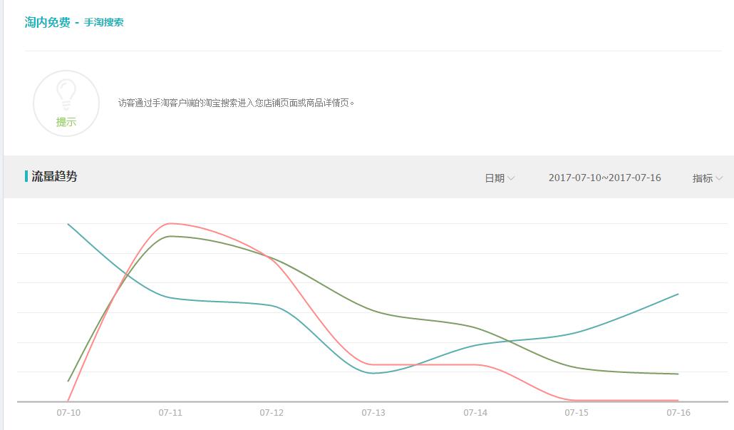 相信各位都有这样的经历,手淘搜索流量总是下滑,自己却束手无策,不是没有办法,而是不知道从哪里去优化。所以我们今天要来做的。就是细节性的去分析手淘搜索下滑到底有哪一些原因。接下来听我一一道来。 我们可以在生意参谋点开流量地图,查看自己的数据。 第一项我们可以看到手淘搜索,旁边带来的访客数,旁边有上升和下滑的百分比来提醒你,当然我们也可以直接点击进去直观看到这个流量的趋势是否下降。并且注意是什么时间下滑的。