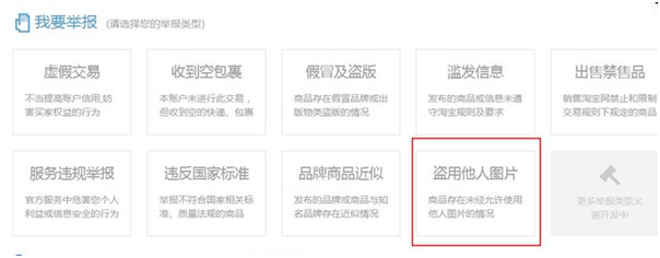 当图片被其他商家盗用之后,发起投诉的路径为:进入【全网举报】(jubao.taobao.com),选择“盗用他人图片”,发起盗图投诉(温馨提示:目前该功能仅对商家开放,子账号不支持发起举报。)